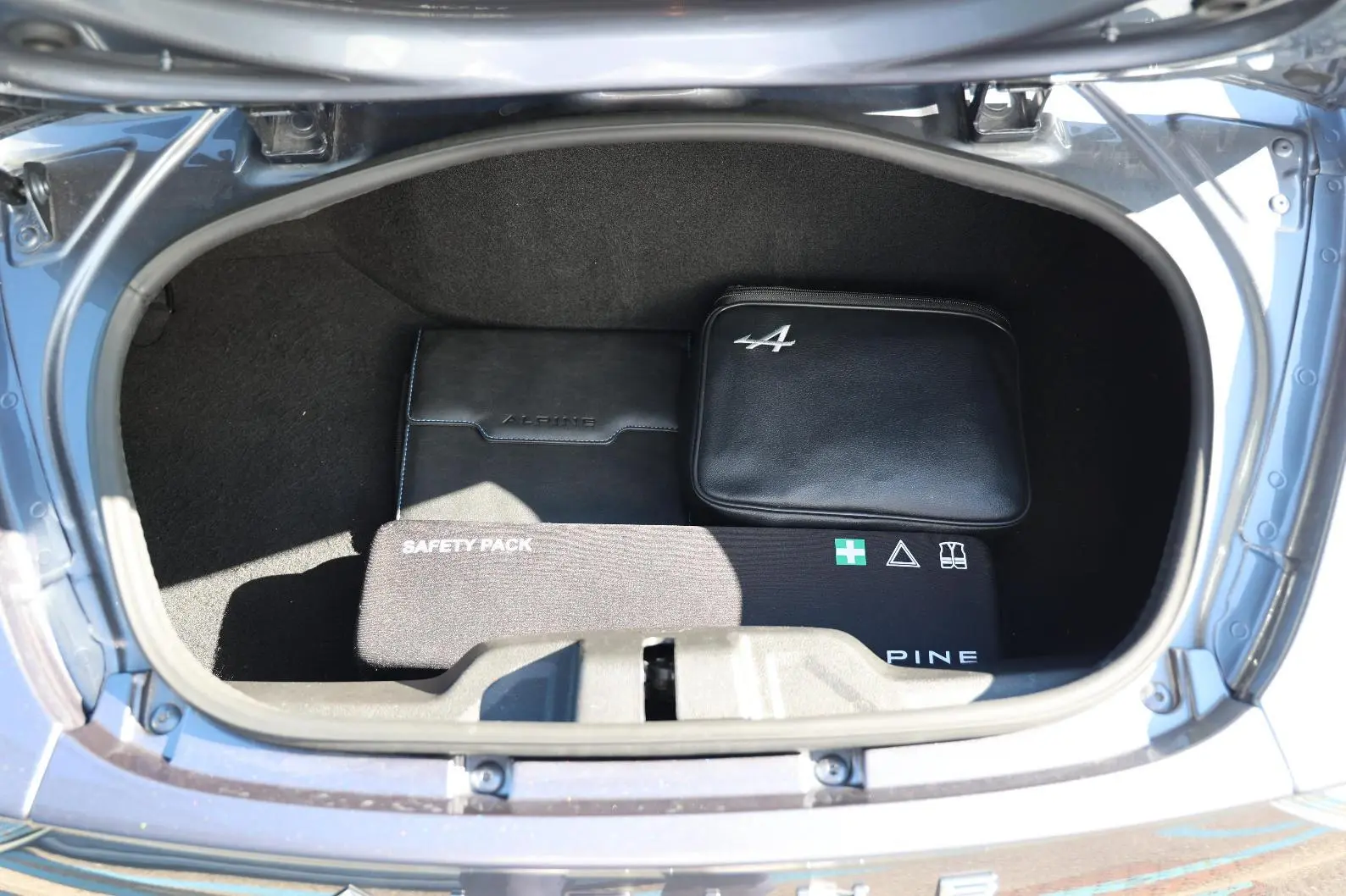- Logo au centre du volant en Bleu Alpine