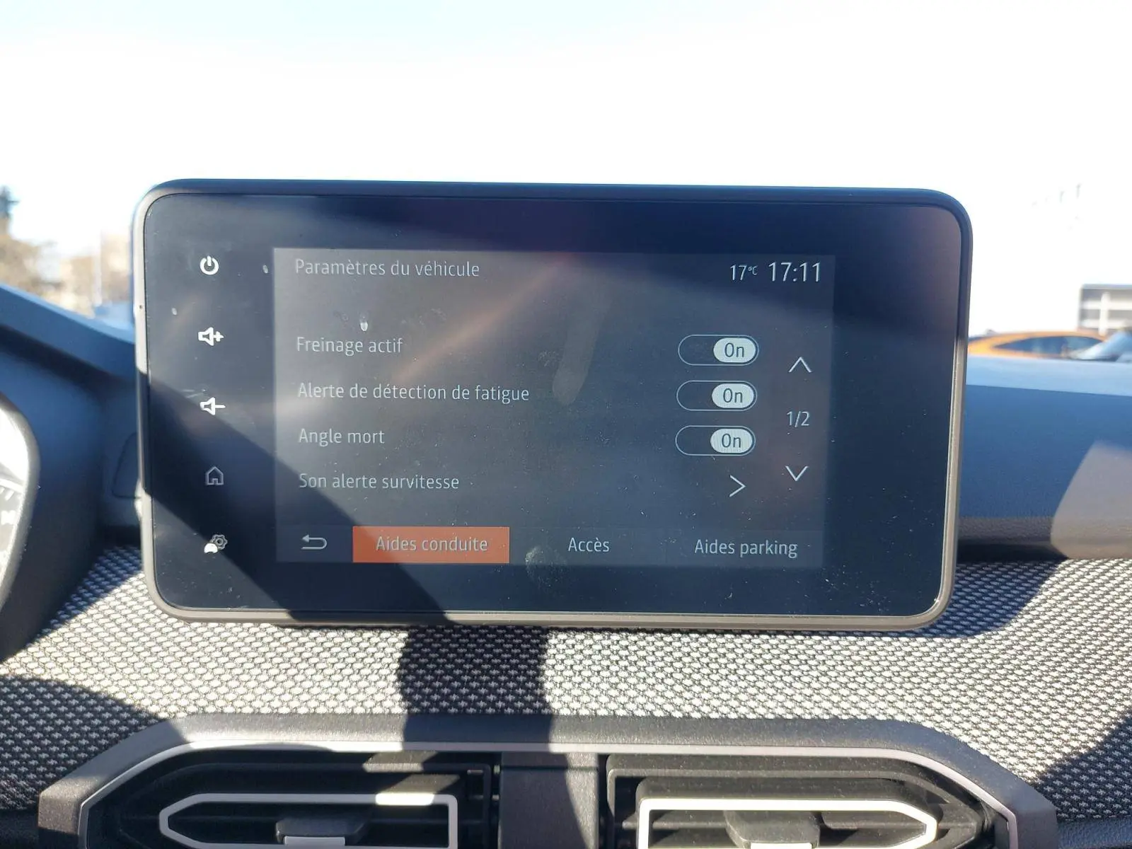 - Media display (écran 8'', réplication smartphone, 4 haut-parleurs, 1 port USB)