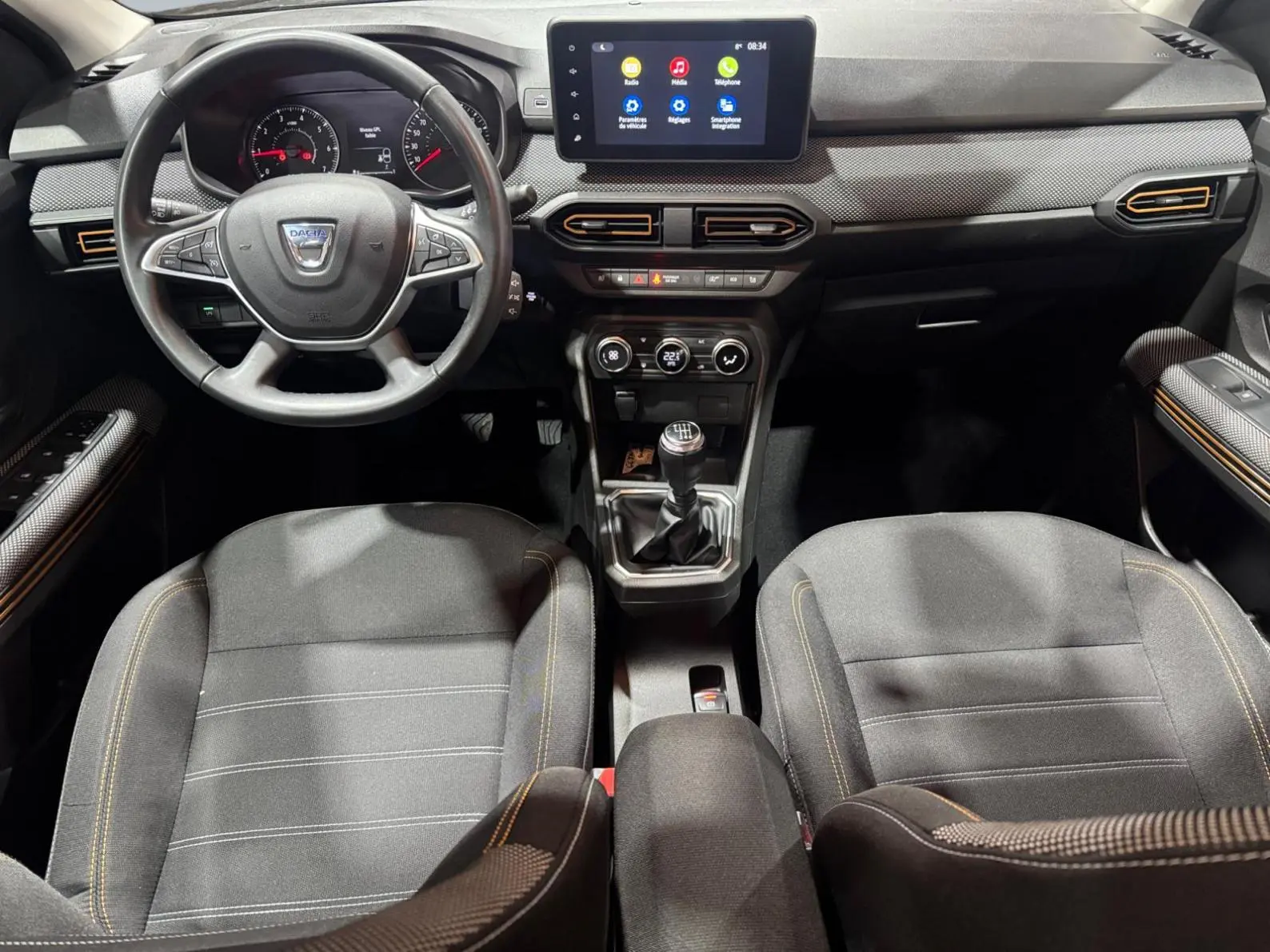 - Media display (écran 8'', réplication smartphone, 4 haut-parleurs, 1 port USB, 1 support téléphone)