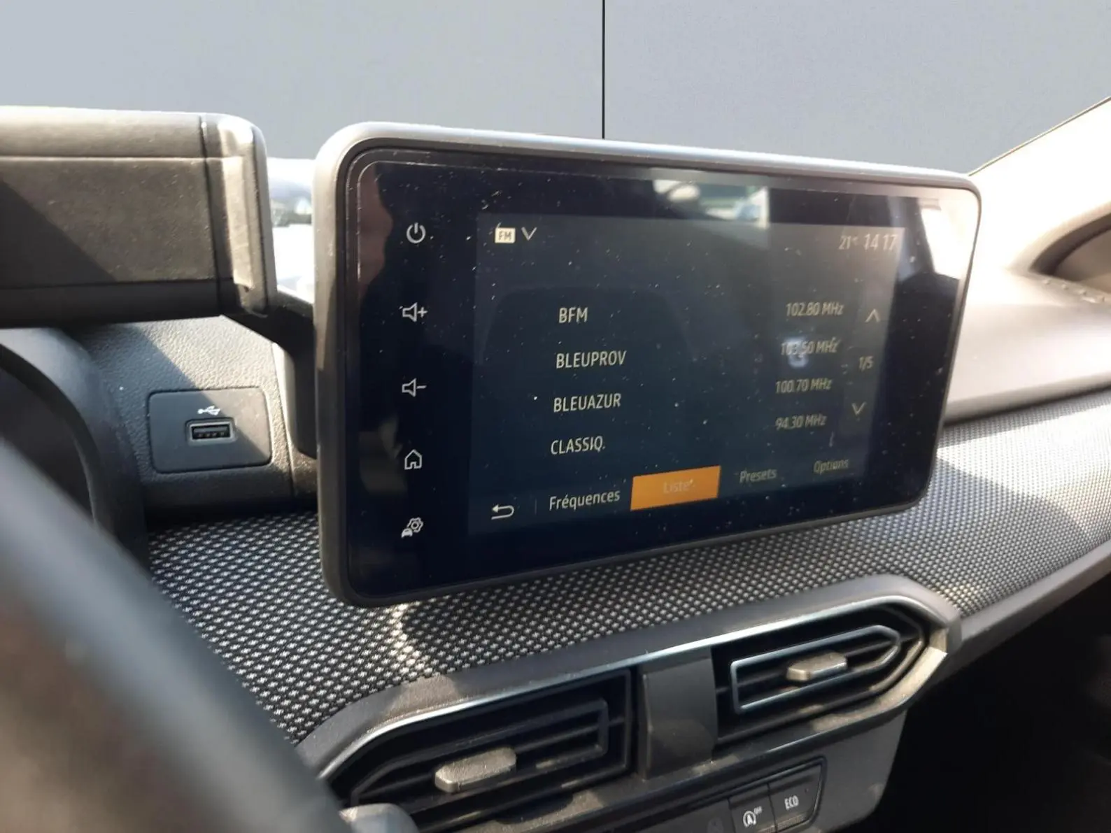 - Media display (écran 8'', réplication smartphone, 4 haut-parleurs, 1 port USB, 1 support téléphone)