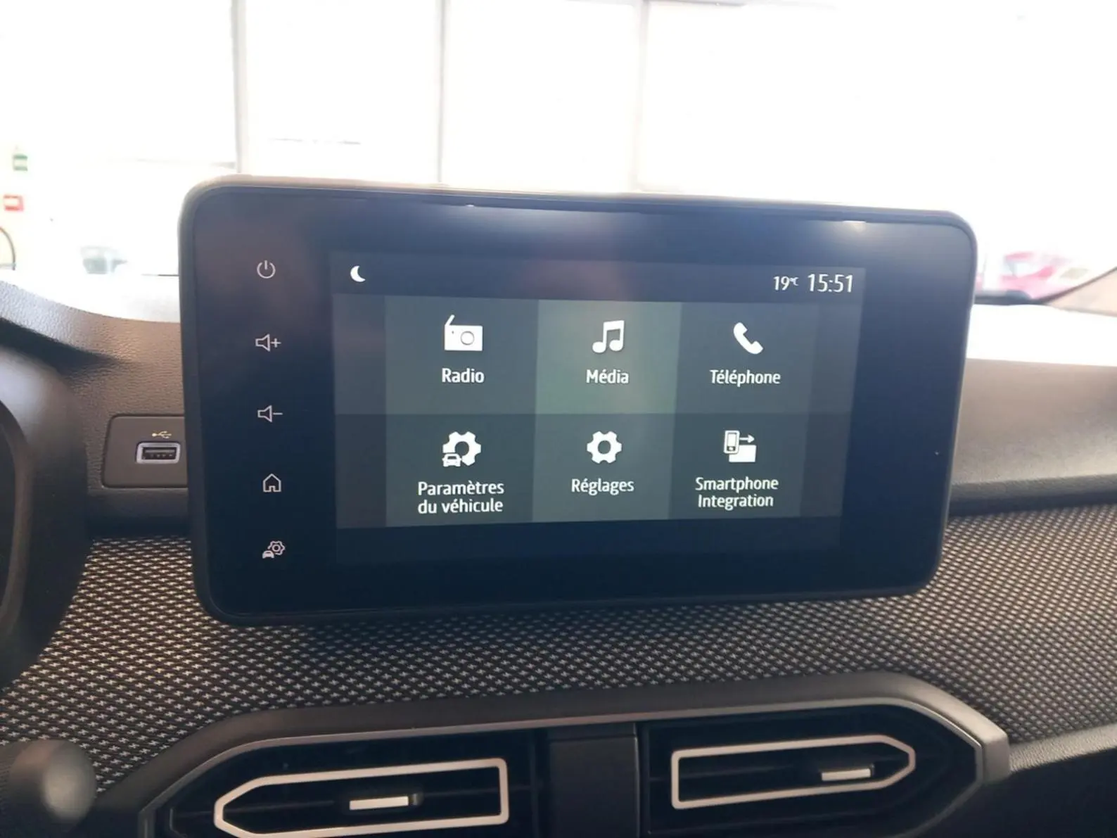 - Media display (écran 8'', réplication smartphone, 4 haut-parleurs, 1 port USB)
