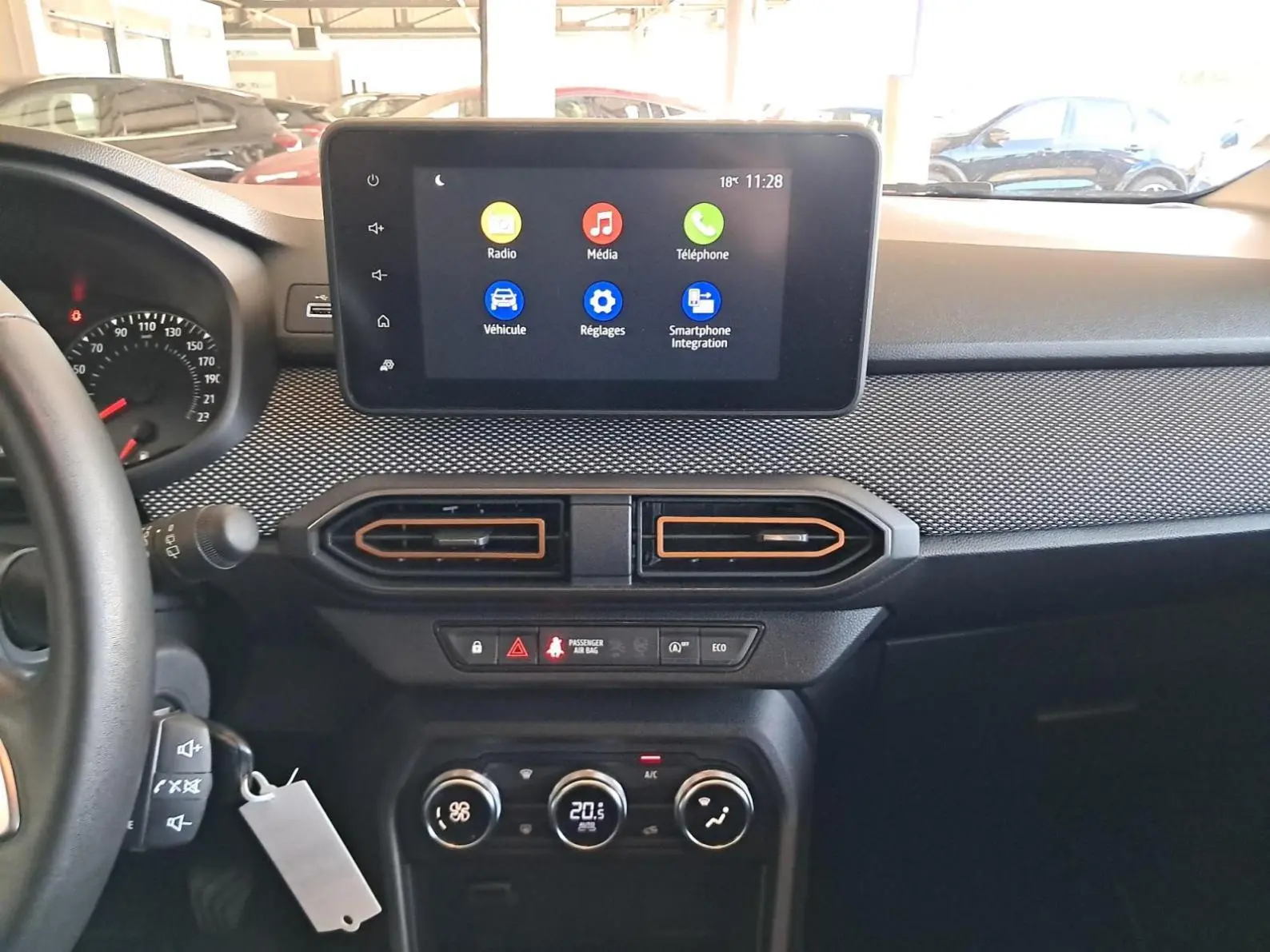 - Media display (écran 8'', réplication smartphone, 4 haut-parleurs, 1 port USB, 1 support téléphone)