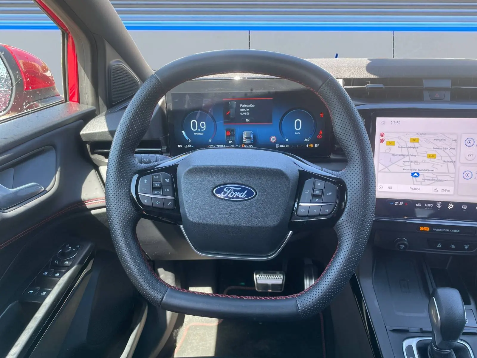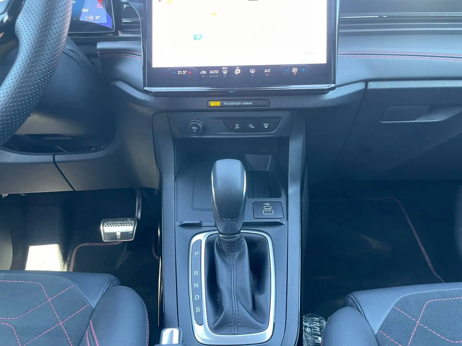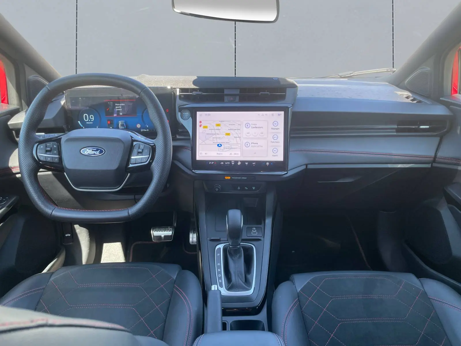 - Pommeau de levier de vitesse gainé cuir avec surpiqures rouges