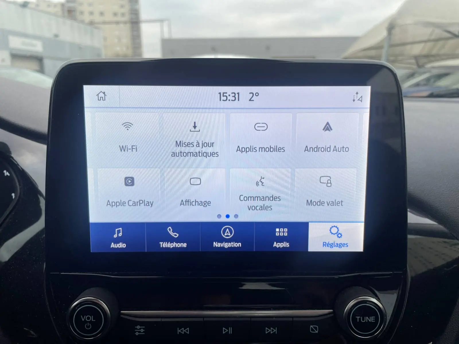 - Système audio Ford SYNC3 avec écran tactile 8", commandes vocales, 2 ports USB, alerte contresens, compatible AppLink, Apple CarPlay et Android auto, 6 HP