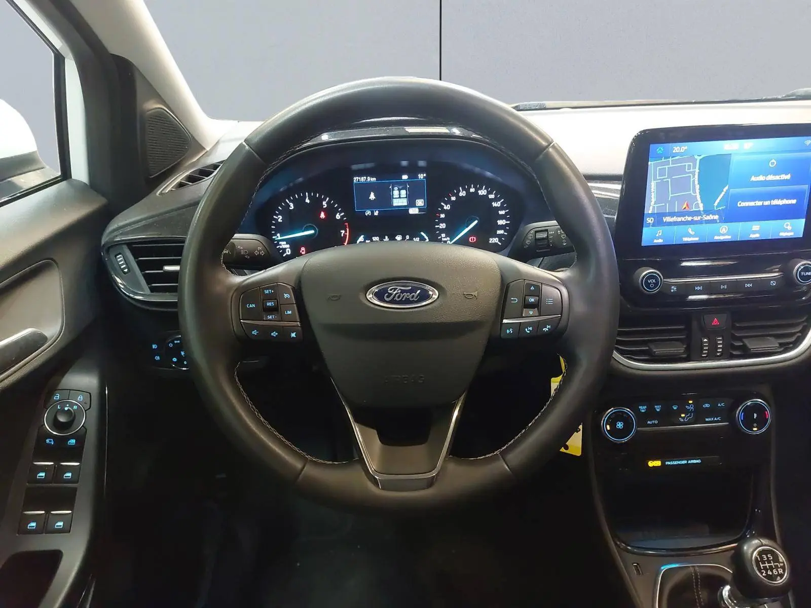 - Système audio Ford SYNC3 avec écran tactile 8", commandes vocales, 2 ports USB, alerte contresens, compatible AppLink, Apple CarPlay et Android auto, 6 HP