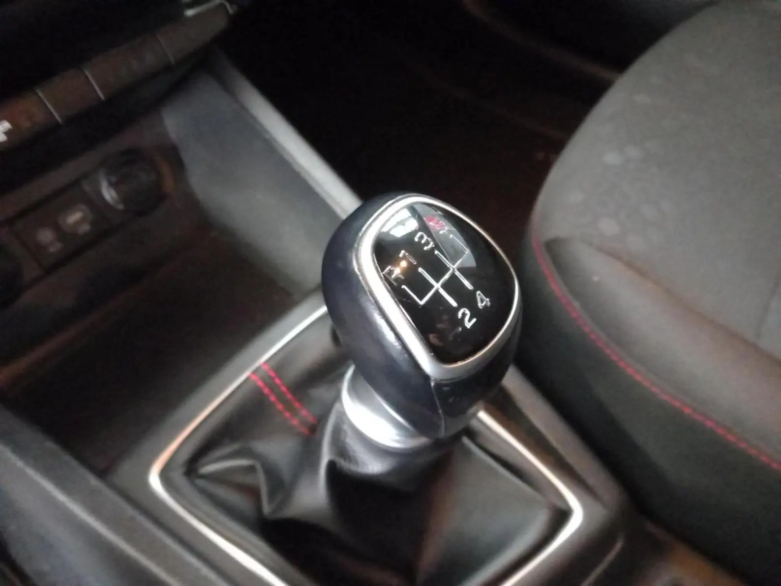 - Surpiqures rouges ou bleues sur le volant et le soufflet de levier de vitesses (selon coloris extérieur)