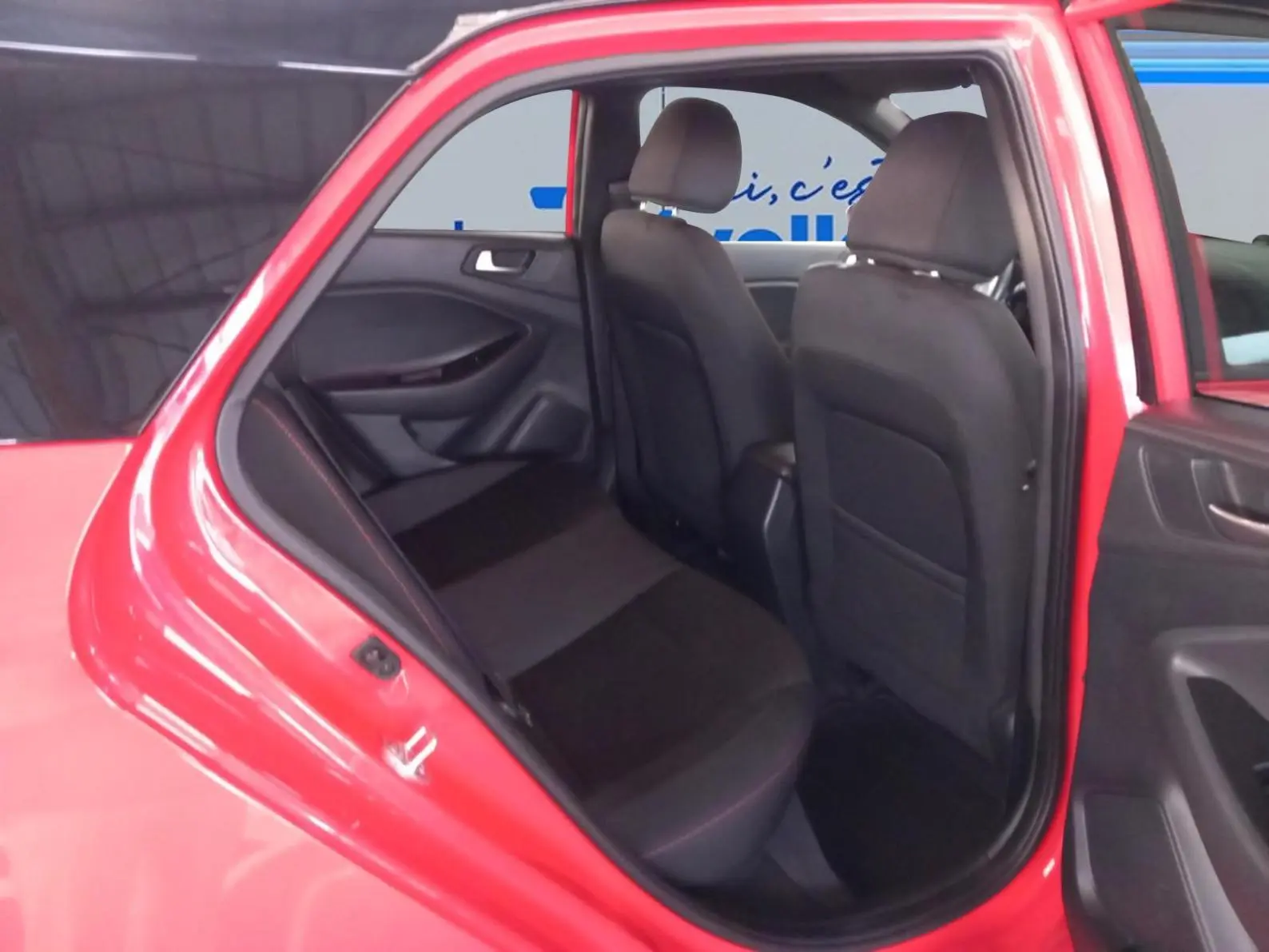 - Sellerie spécifique tissu noir avec surpiqures rouges ou bleues (selon coloris extérieur)