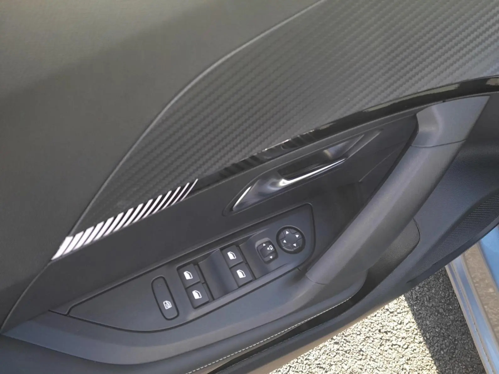 - Eléments de style intérieure: Panneaux de portes AV avec décor Carbone et baguette Noir brillant avec tampographie Quartz, Accoudoirs de porte AV/AR tissu/TEP Isabella avec surpiqure Quartz
