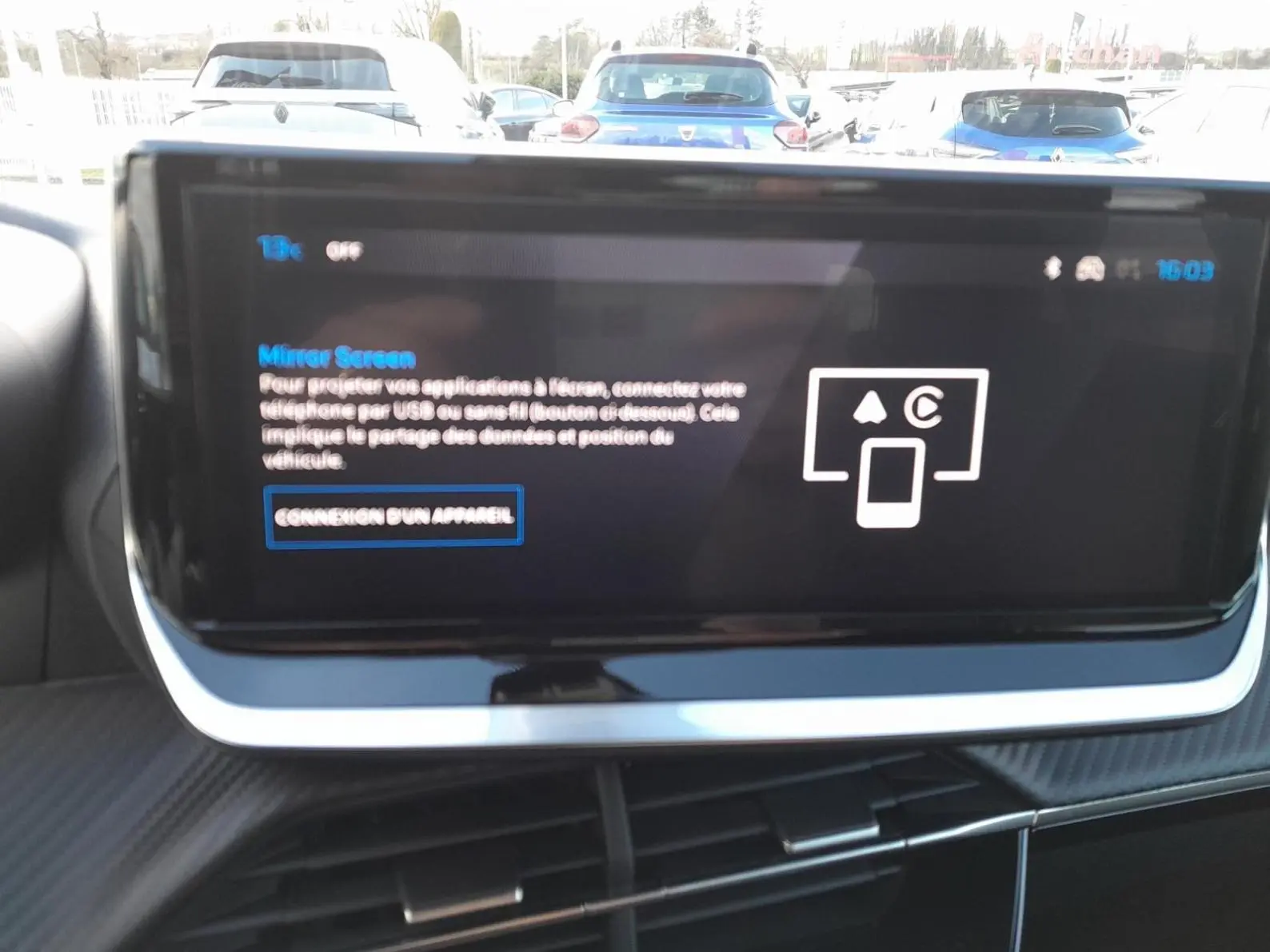 - Peugeot i-Connect: Radio DAB avec écran tactile couleur personnalisable 10" HD, Bluetooth - Mirror Screen sans fil (Apple CarPlay/Android Auto) - Wifi - 1 prise USB type C ( Data+charge), 1 prise USB type C (Charge) sur console AV