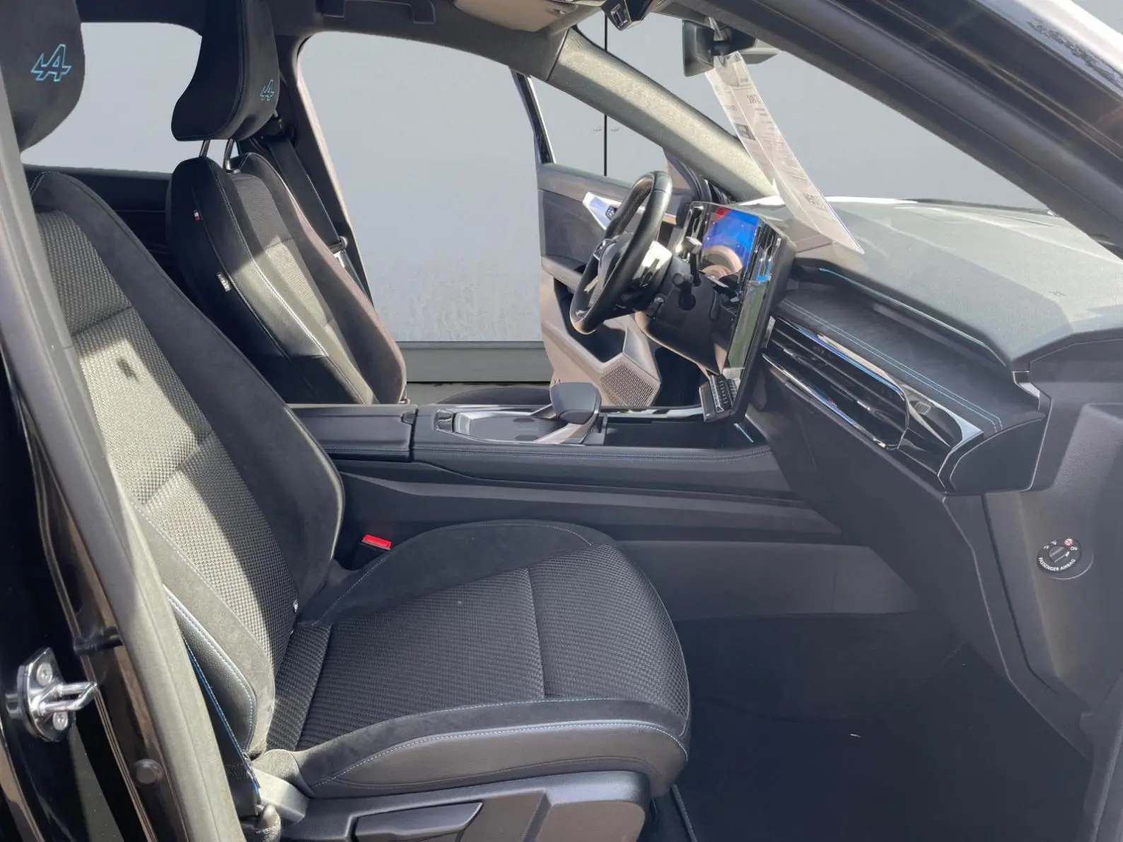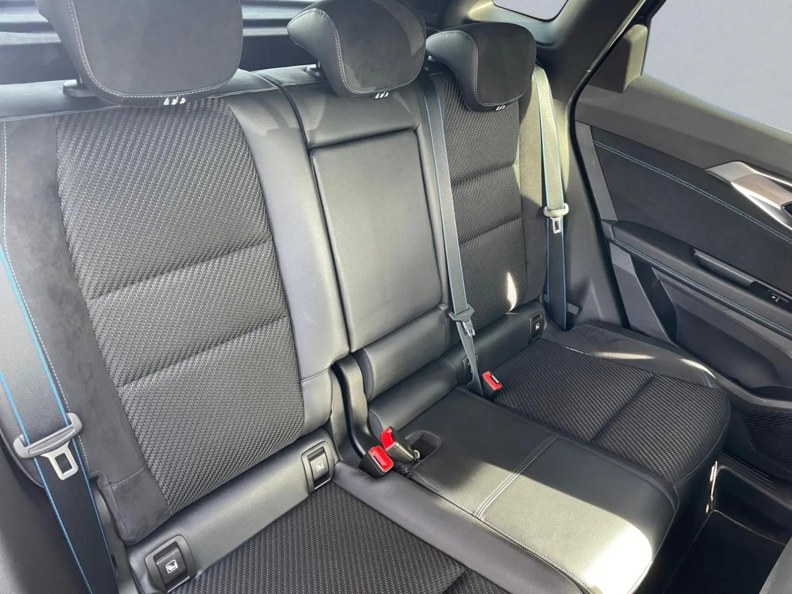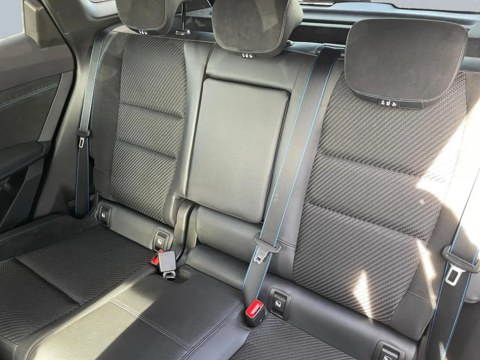 - Sellerie mixte tissu carbone / alcantara avec surpiqûres bleu
