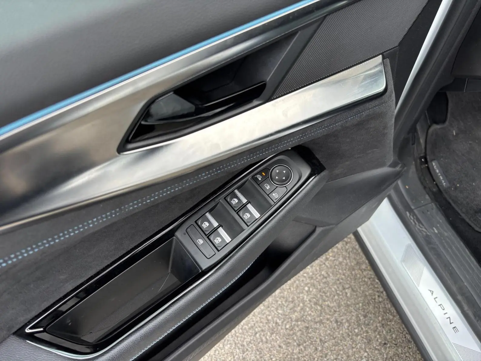 - Sellerie mixte tissu carbone / alcantara avec surpiqûres bleu