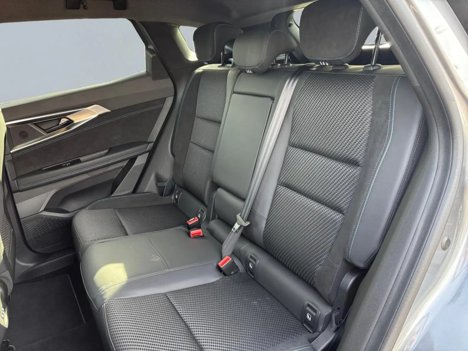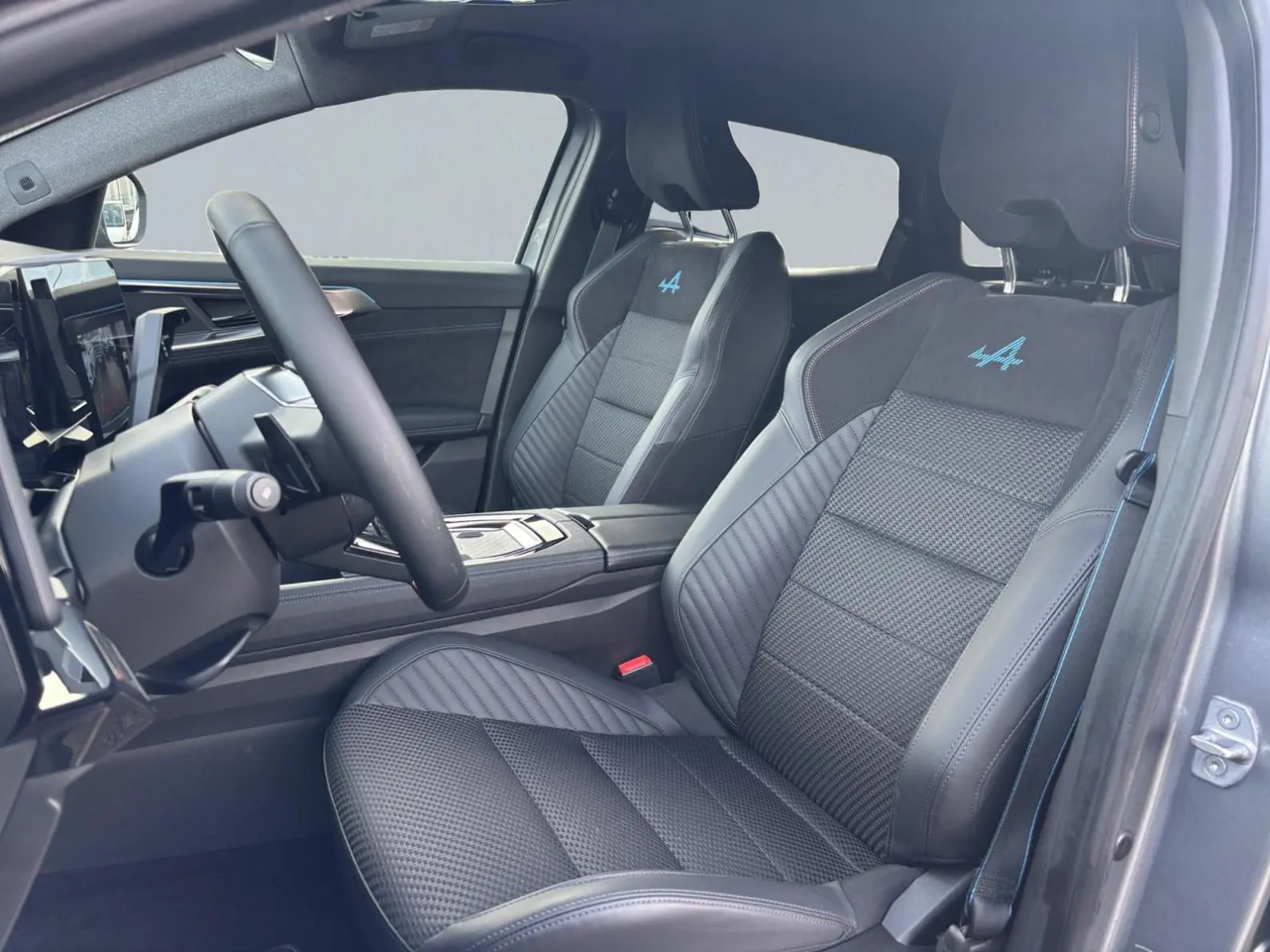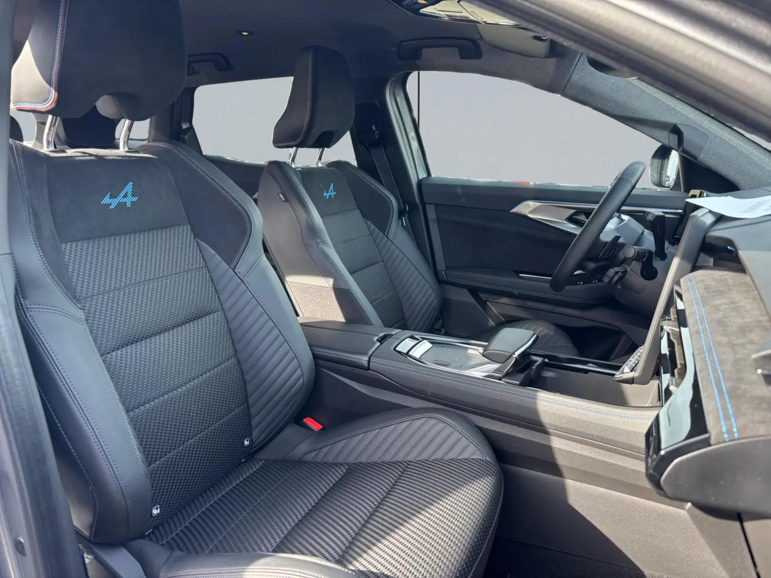 - Sellerie mixte tissu carbone Alcantara® avec surpiqûres bleu, blanc, rouge