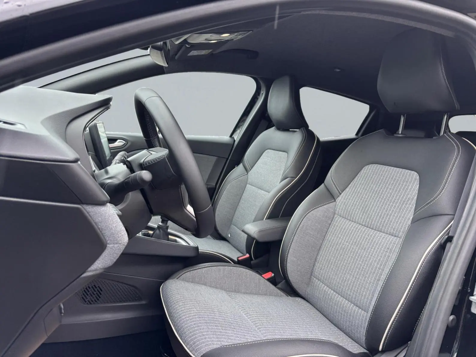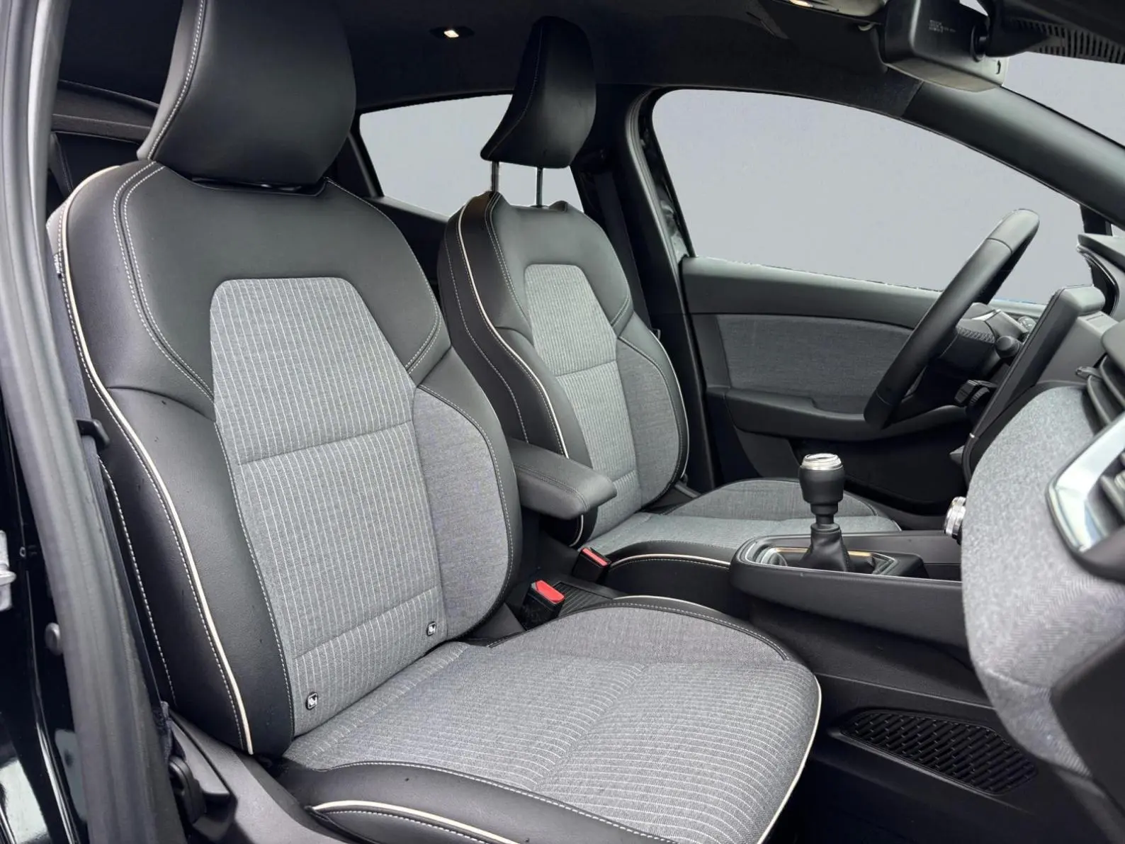 - Sellerie textile et textile enduit grainé gris/noir avec surpiqûres cuivre