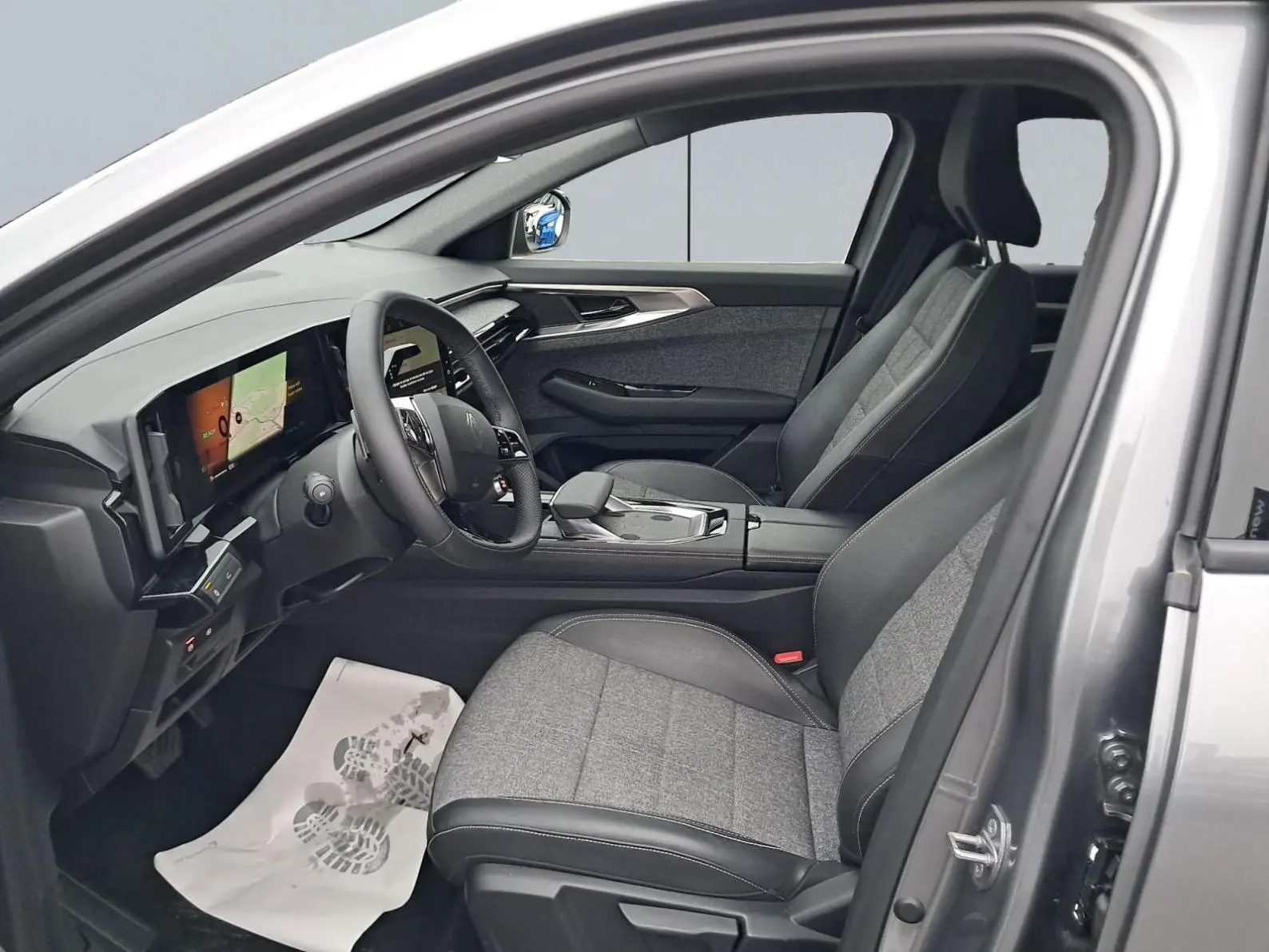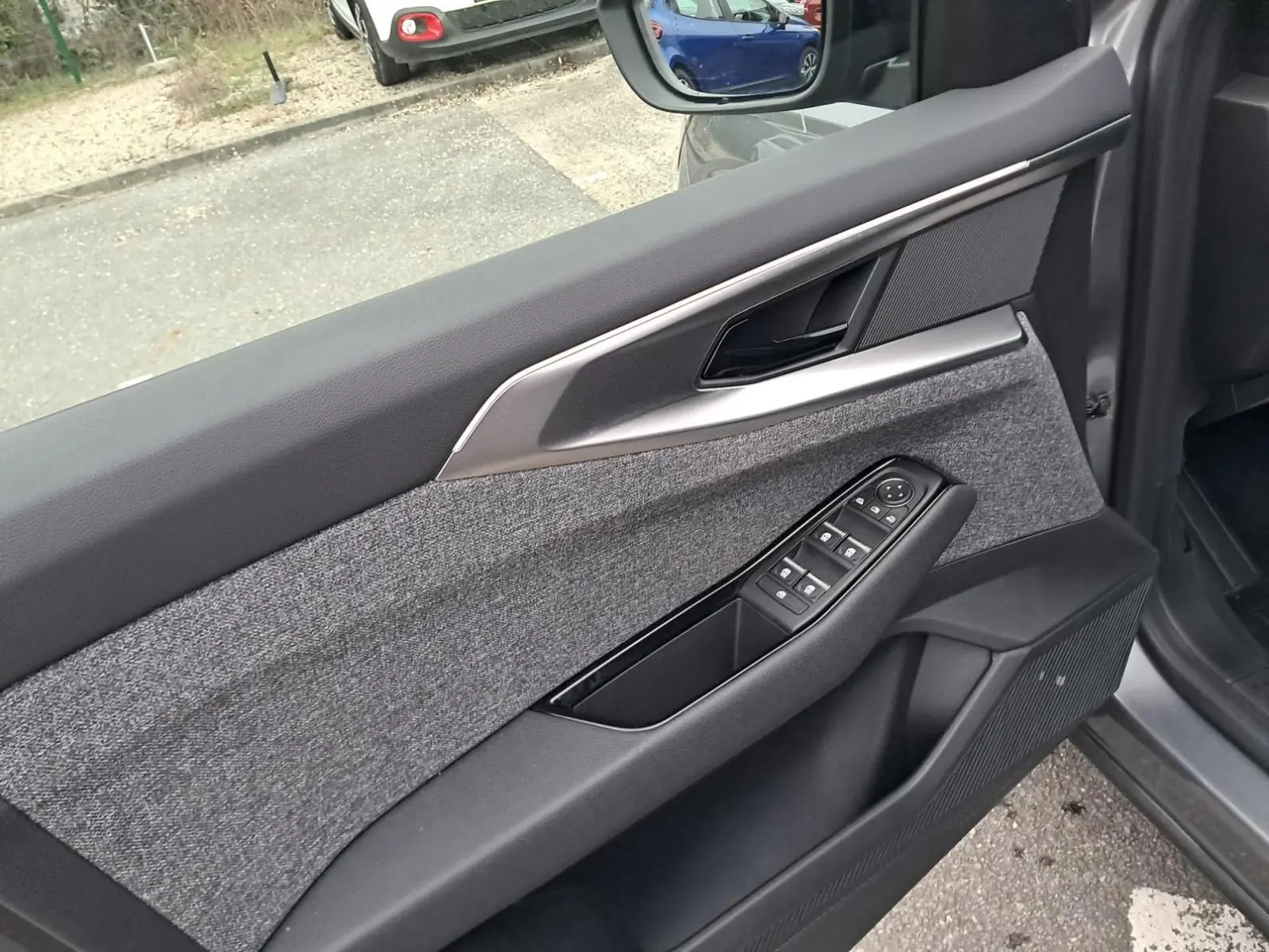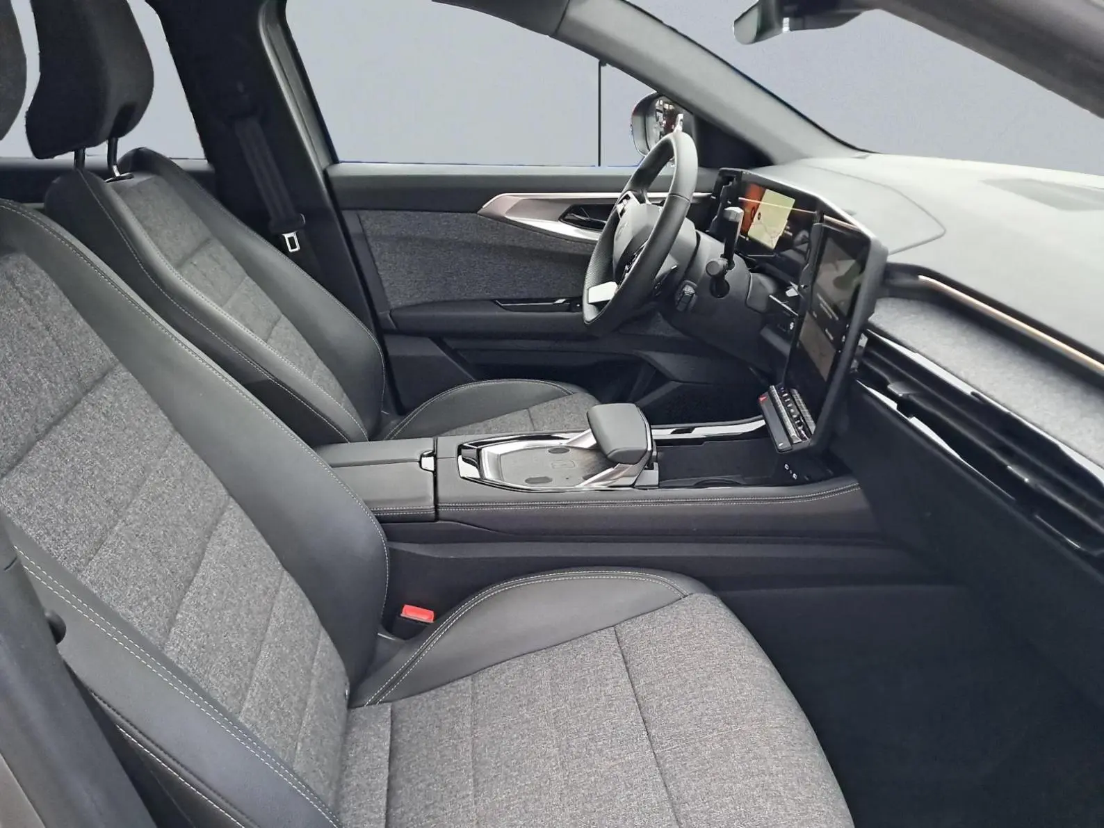 - Sellerie mixte tissu gris / textile enduit grainé noir