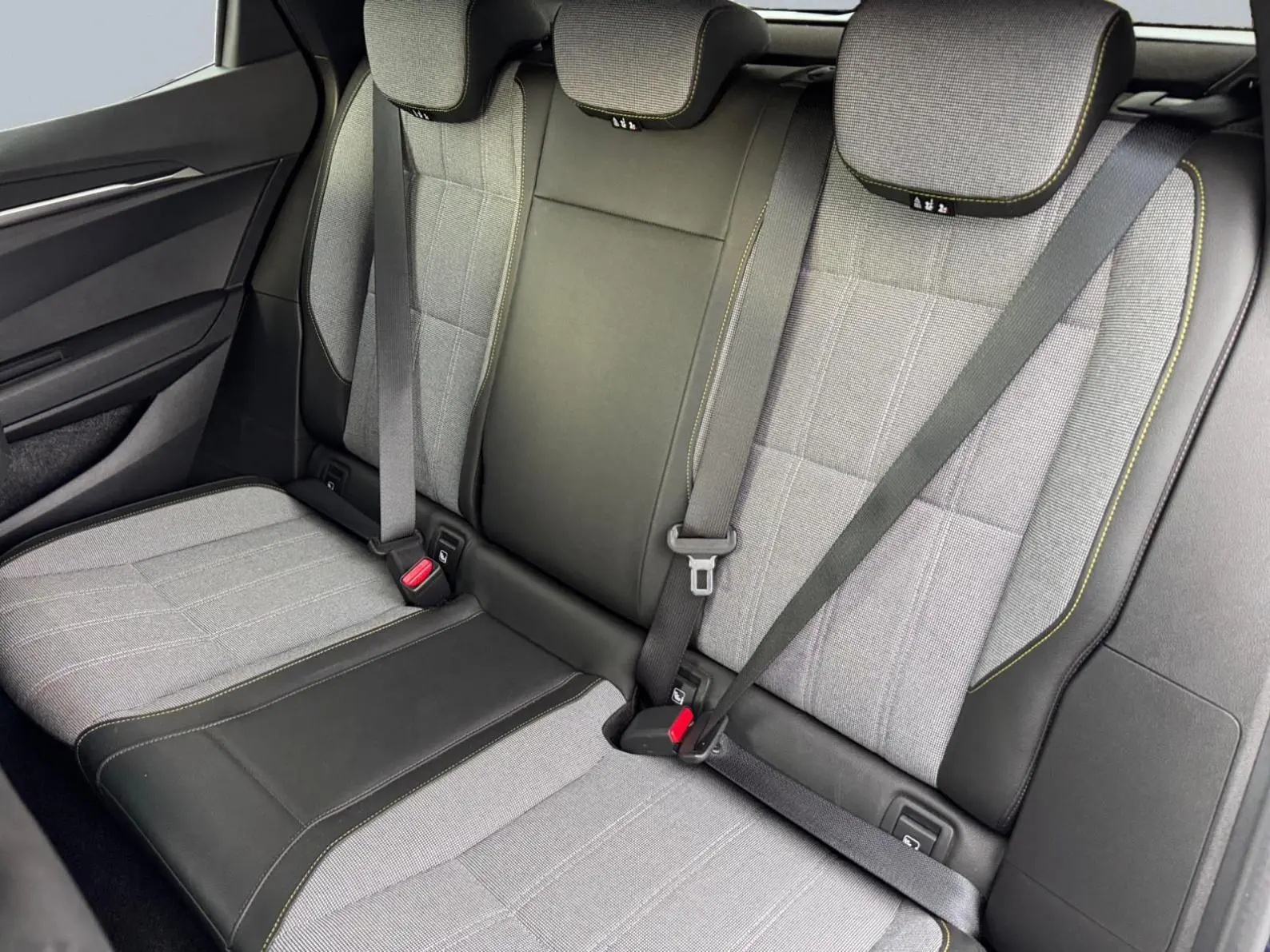 - Sellerie tissu recyclé gris chiné/textile enduit grainé recyclé noir titane/surpiqûres jaunes