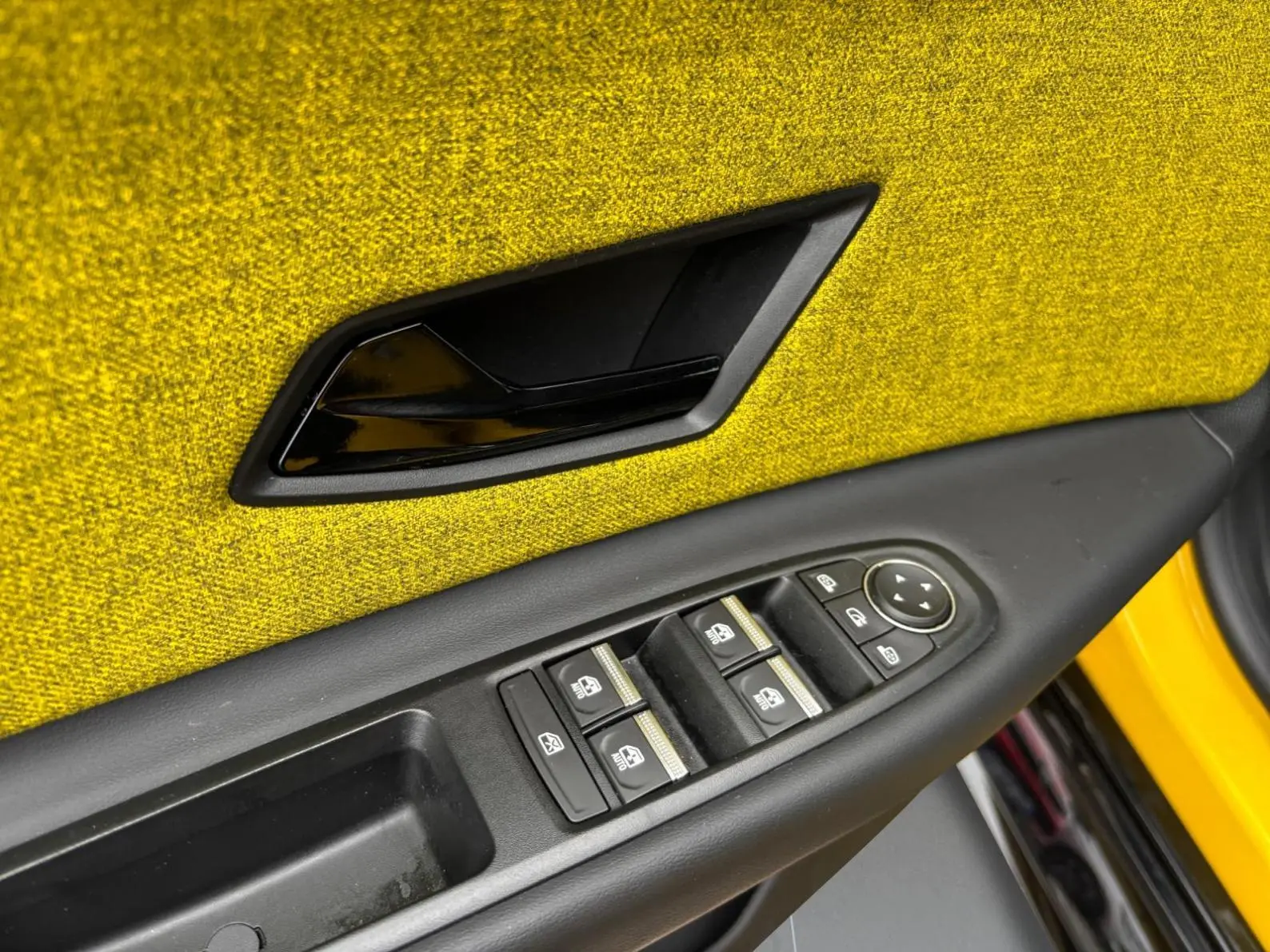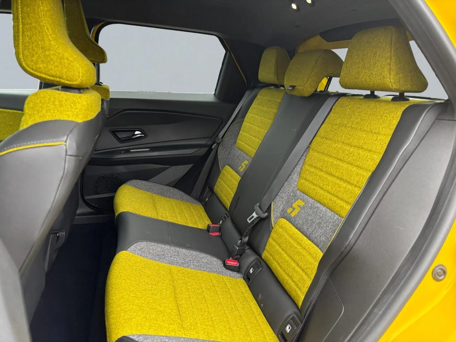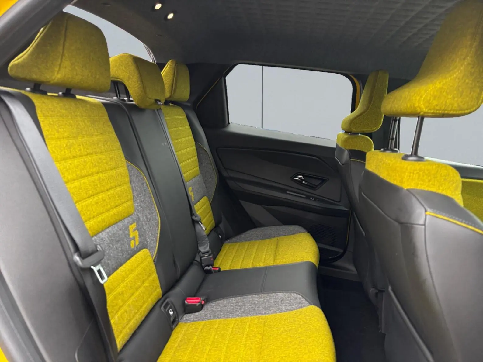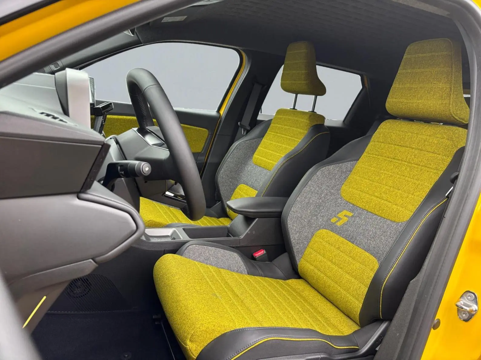 - Sellerie textile 100% recyclé gris et jaune, double surpiqûre jaune / textile refined biosourcé noir