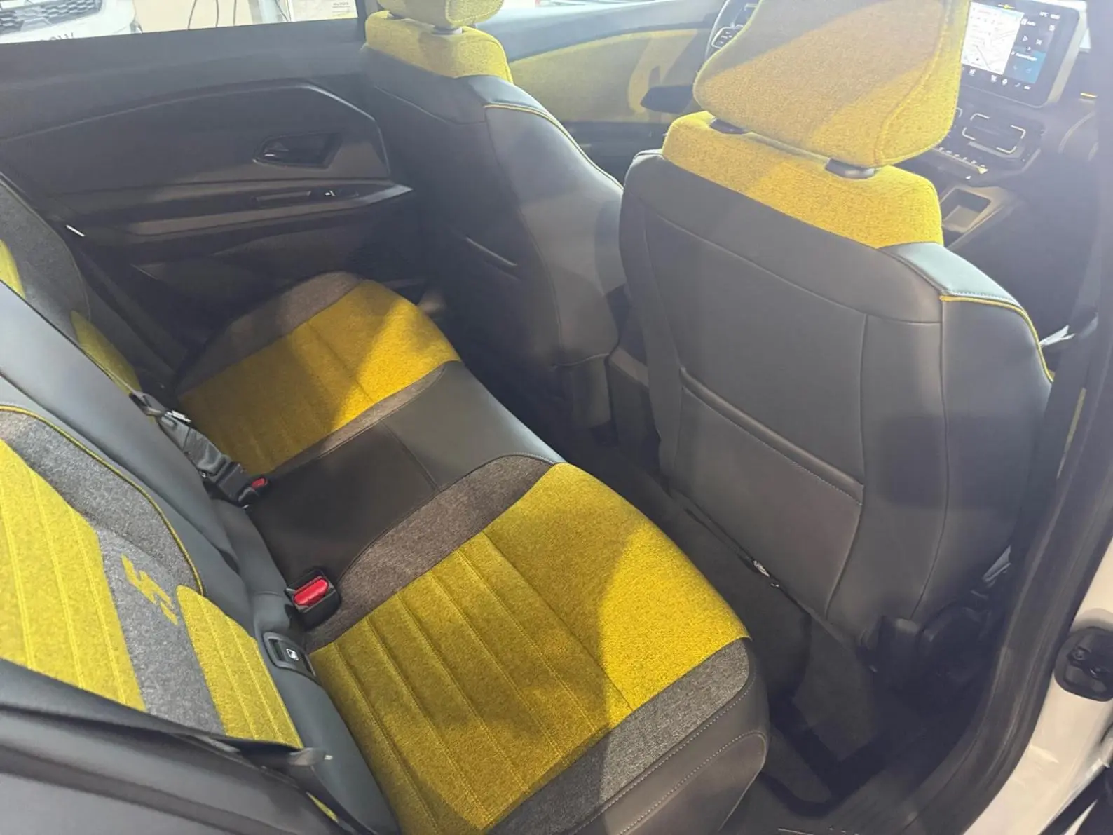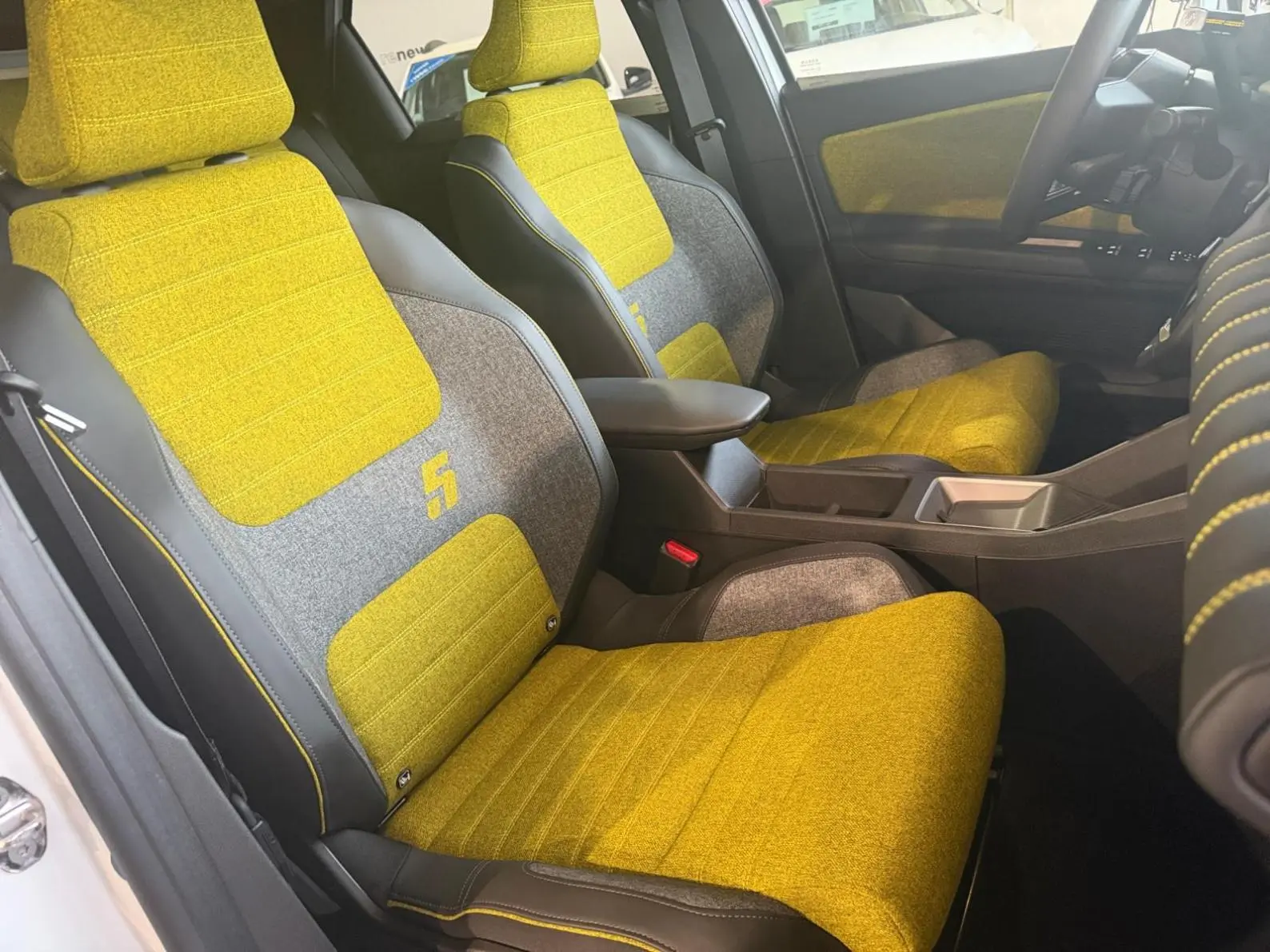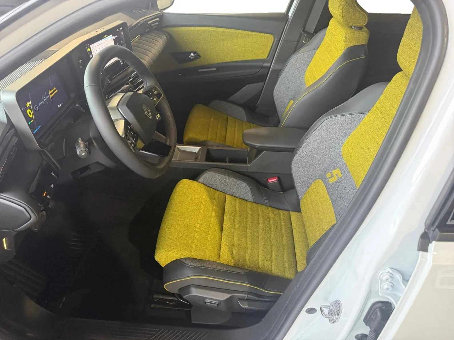 - Sellerie textile 100% recyclé gris et jaune, double surpiqûre jaune / textile refined biosourcé noir