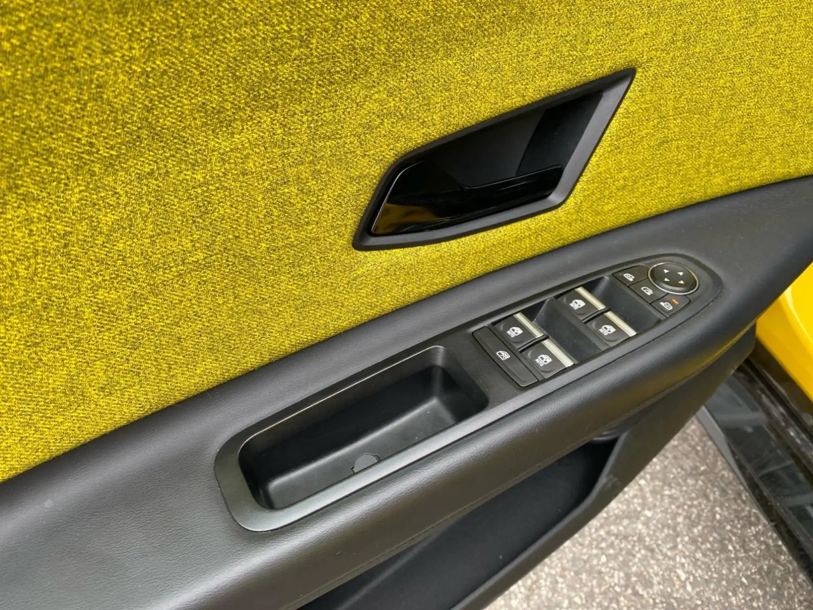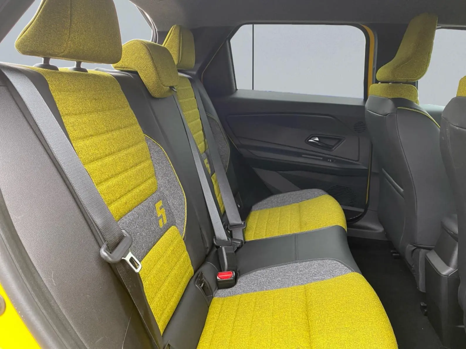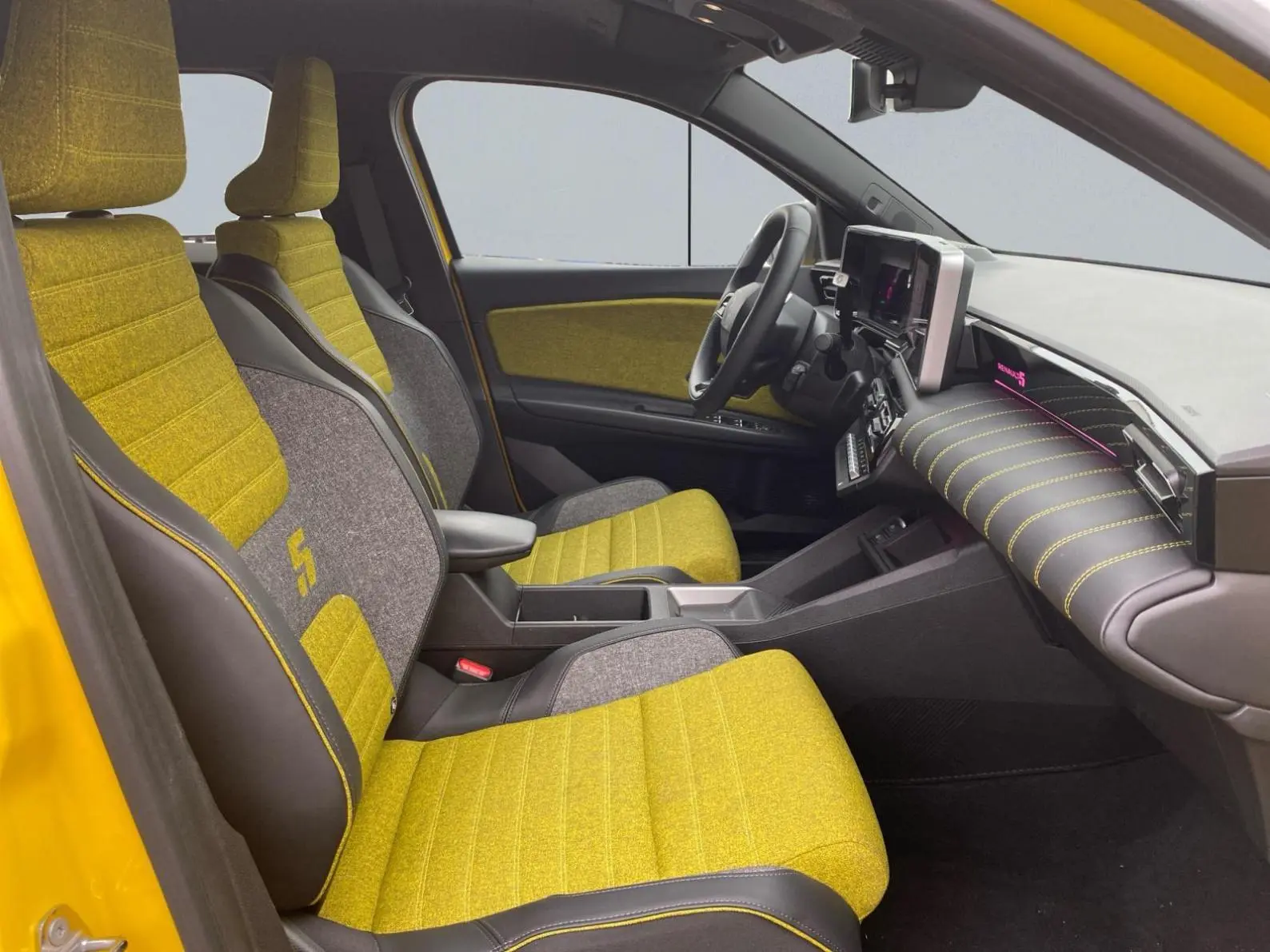 - Sellerie textile 100% recyclé gris et jaune, double surpiqûre jaune / textile refined biosourcé noir