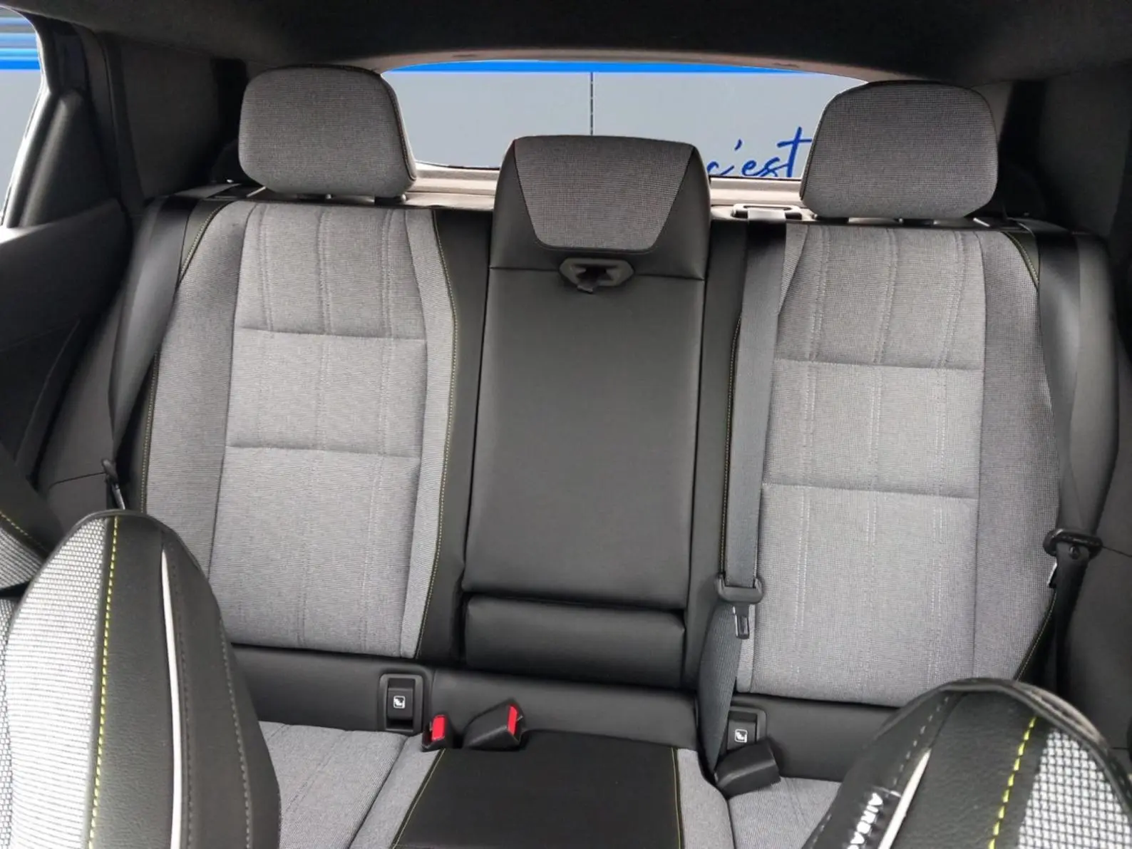 - Sellerie tissu recyclé gris chiné/textile enduit grainé recyclé noir titane/surpiqûres jaunes