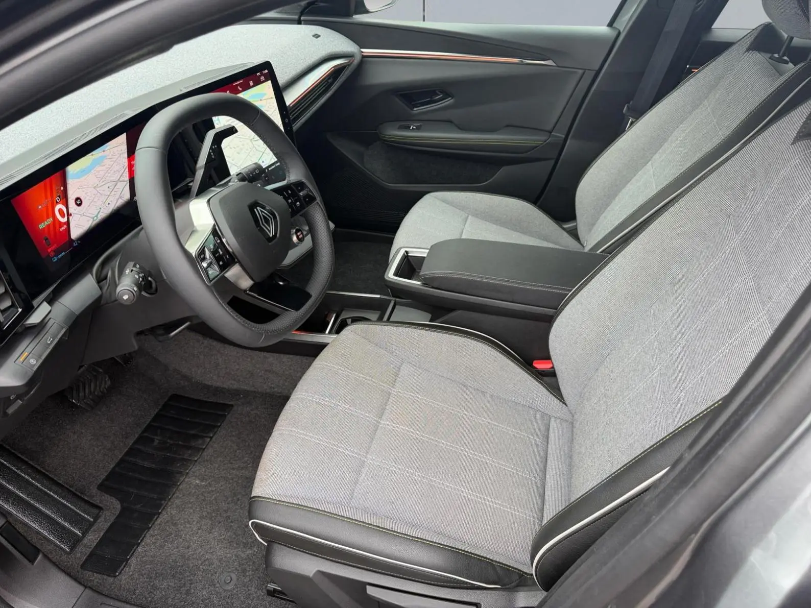 - Sellerie tissu recyclé gris chiné/textile refined noir titane et surpiqûres jaunes