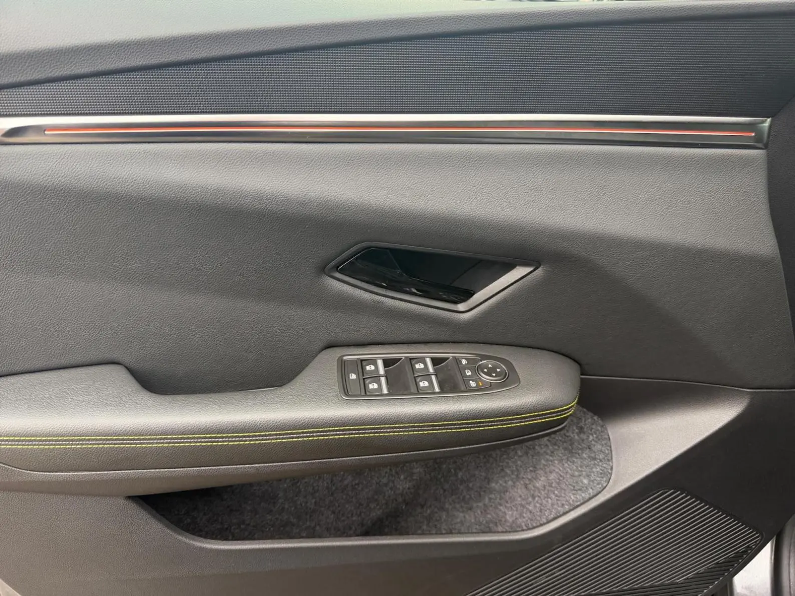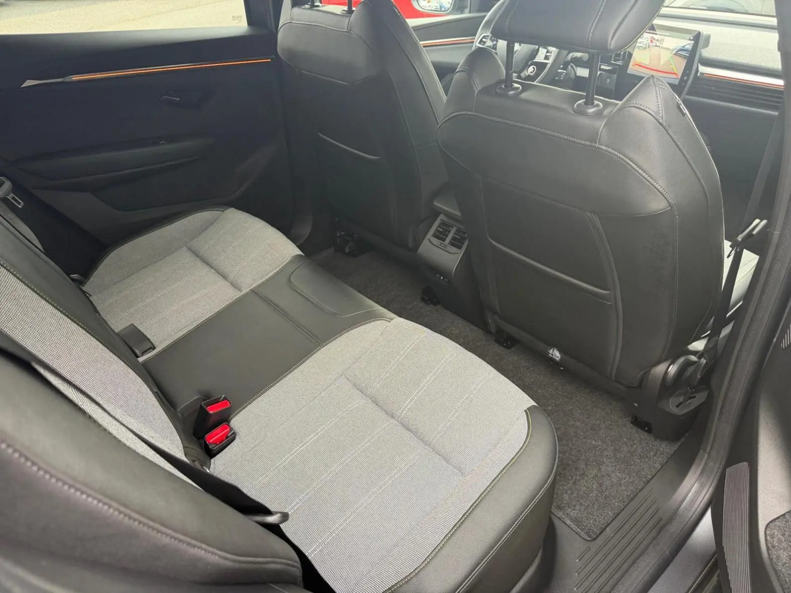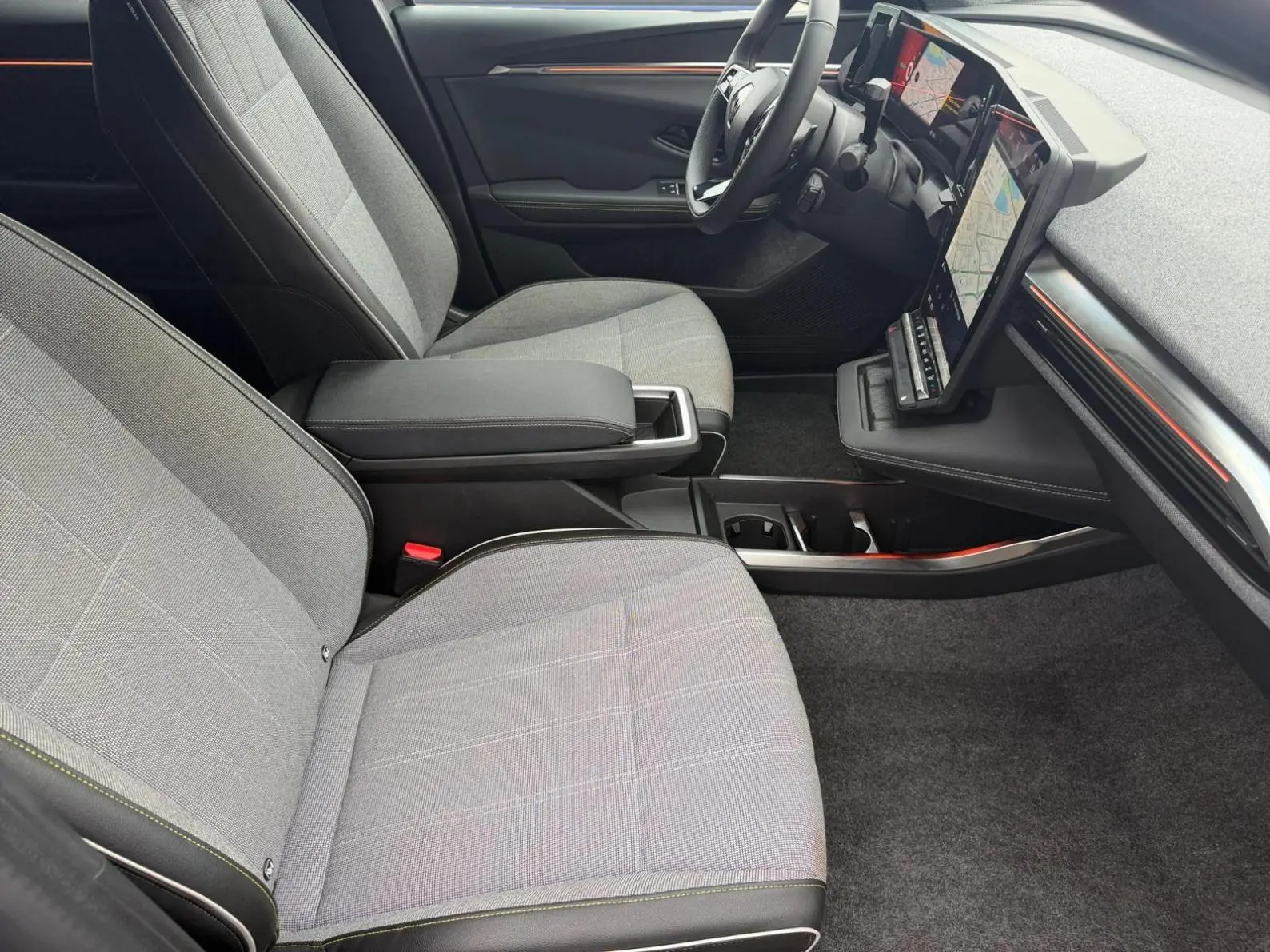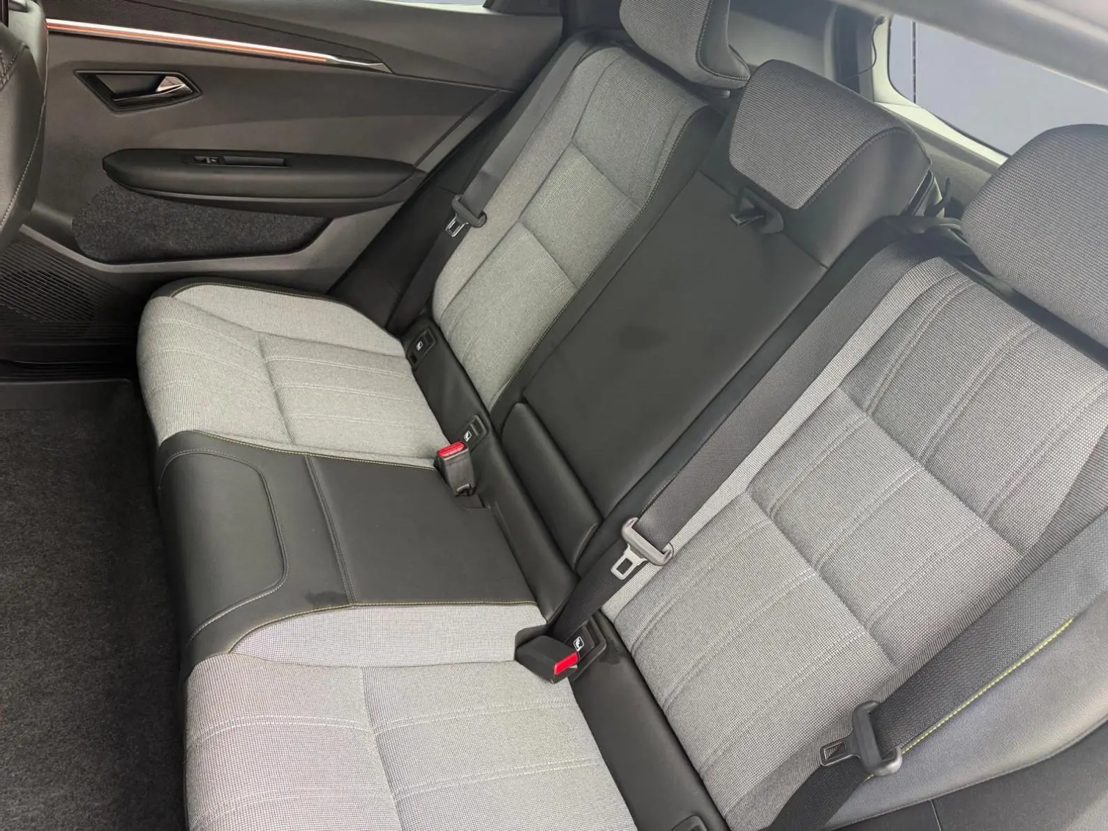 - Sellerie tissu recyclé gris chiné/textile enduit grainé recyclé noir titane/surpiqûres jaunes
