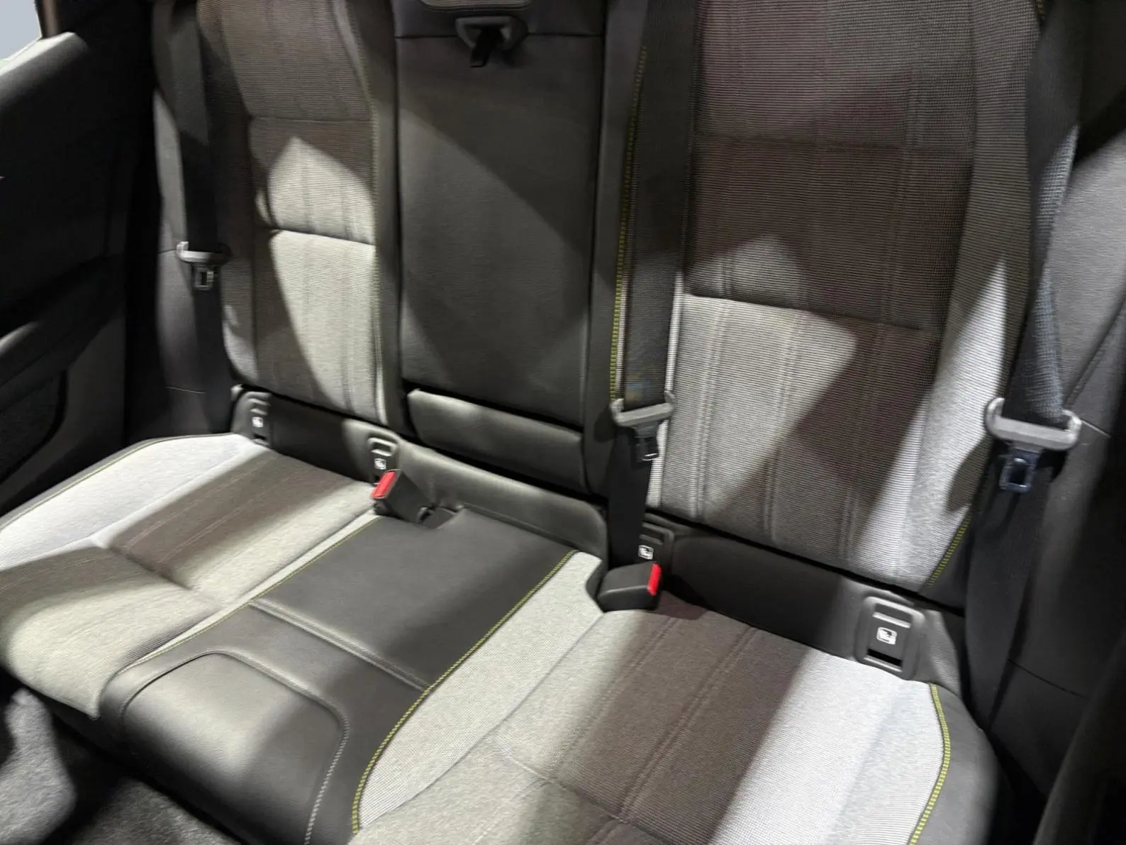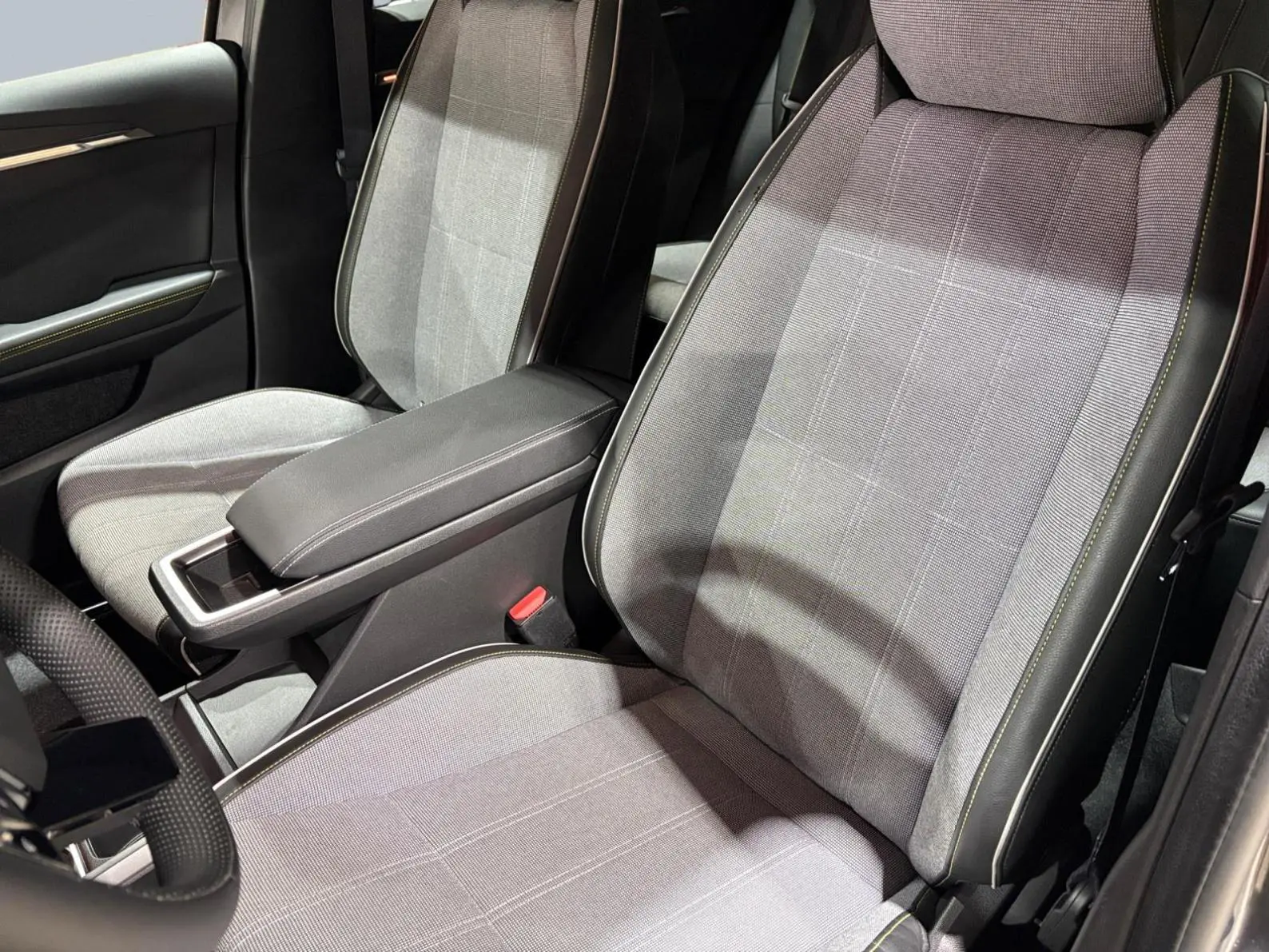 - Sellerie tissu recyclé gris chiné/textile enduit grainé recyclé noir titane/surpiqûres jaunes