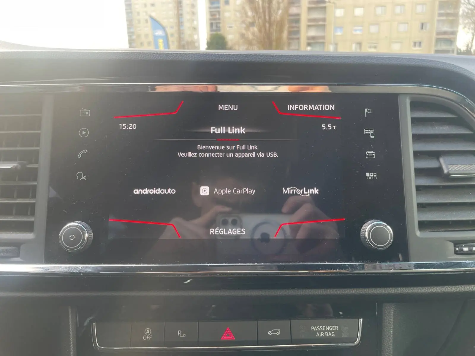 - 2 prises USB AR avec filet de rangement pour téléphone mobile